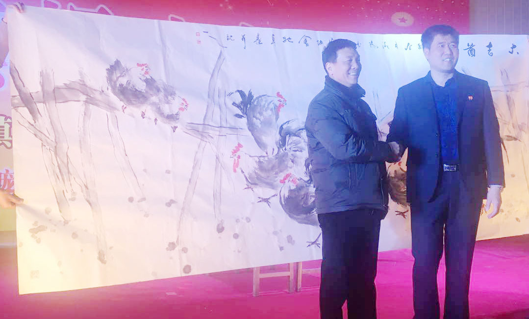 魏驰卓创作的丈二巨幅《大吉图》赠送西庞书记